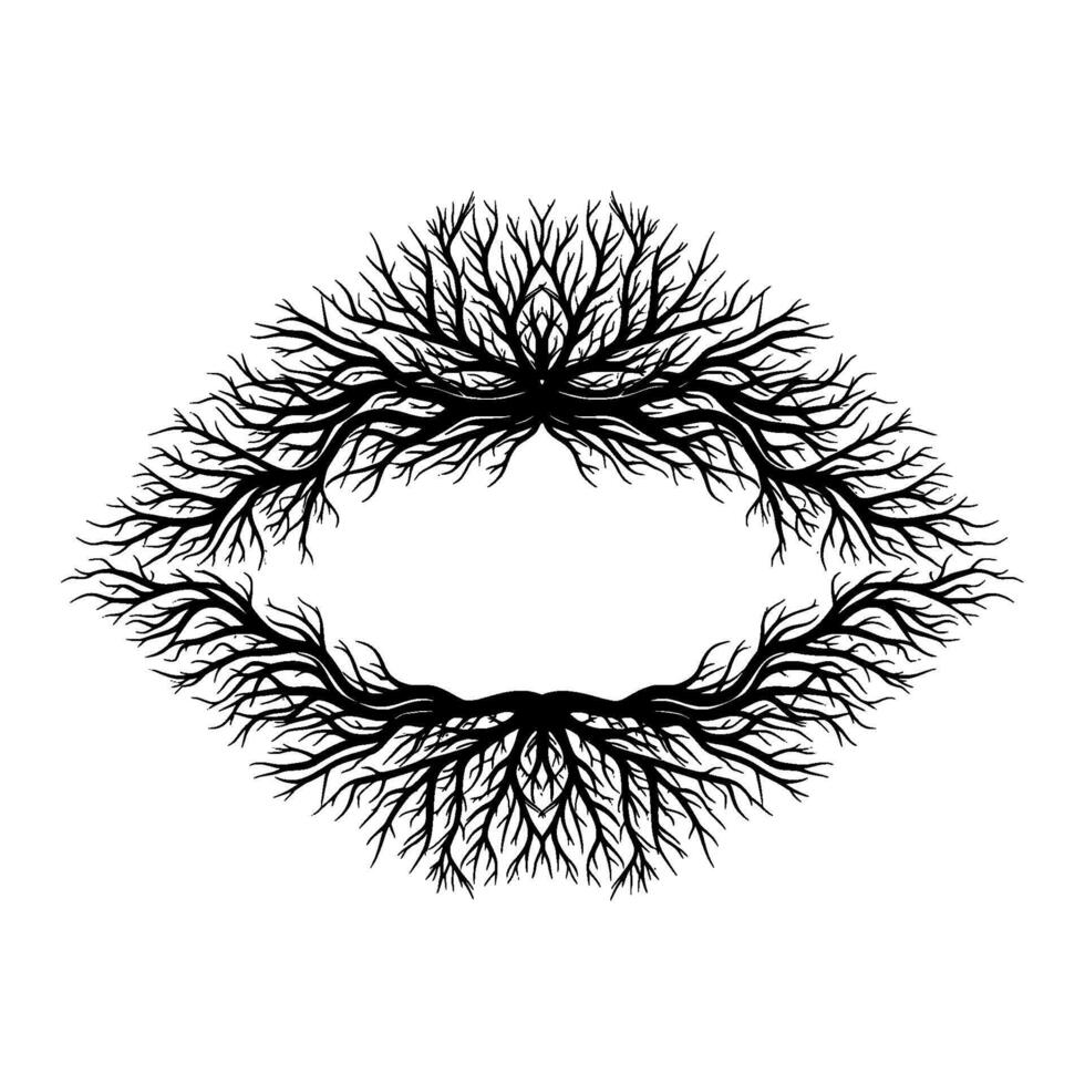 Abstract symmetrical tree root branches forming a stylized oval shape Pro Vector