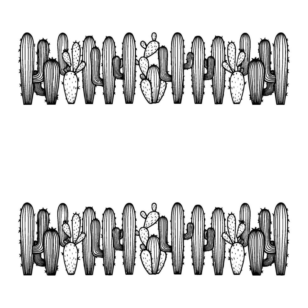 A Decorative Border Pattern Featuring a Continuous Line of Various Succulent Cacti Including Saguaro and Prickly Pear Varieties in a Hand Drawn Illustration Style Pro Vector