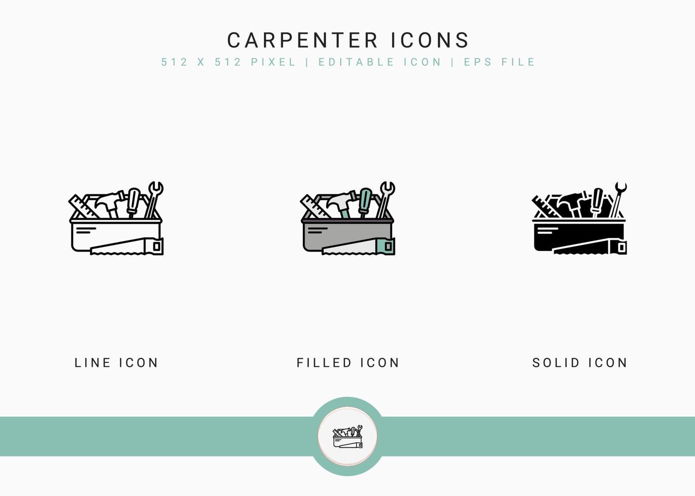 Carpenter icons set vector illustration with solid icon line style. Hammer tool building concept. Editable stroke icon on isolated background for web design, user interface, and mobile application Pro Vector and Pro SVG