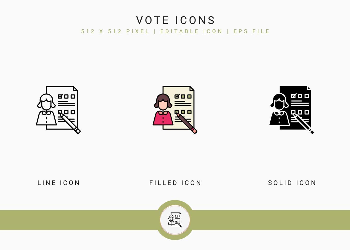 Vote icons set vector illustration with solid icon line style. Customer satisfaction check concept. Editable stroke icon on isolated background for web design, infographic and UI mobile app. Pro Vector and Pro SVG