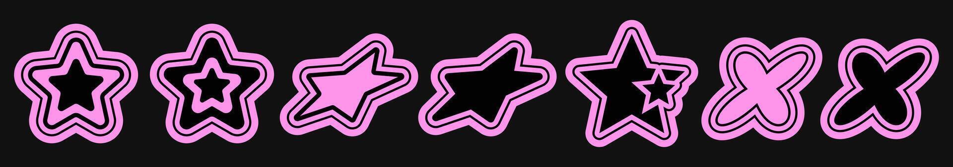 Neon glow star icons in a y2k style. Bright pink outlines create a dreamy cosmic vibe. Smooth shifting shapes. Set of glowing elements, perfect for patterns, stickers, and creative projects. Pro Vector