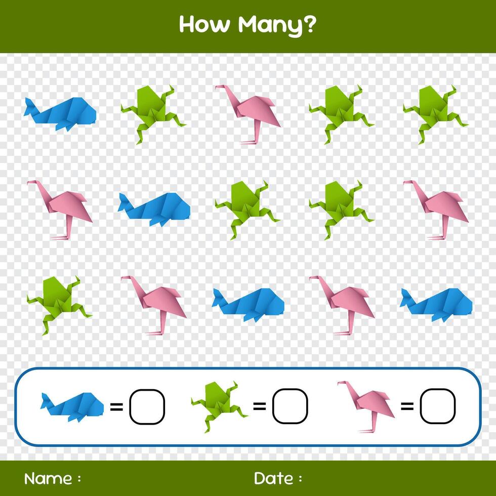 Count how many objects. Educational mathematical game. Counting games for children. Kids activity sheet. Template for how many Pro Vector