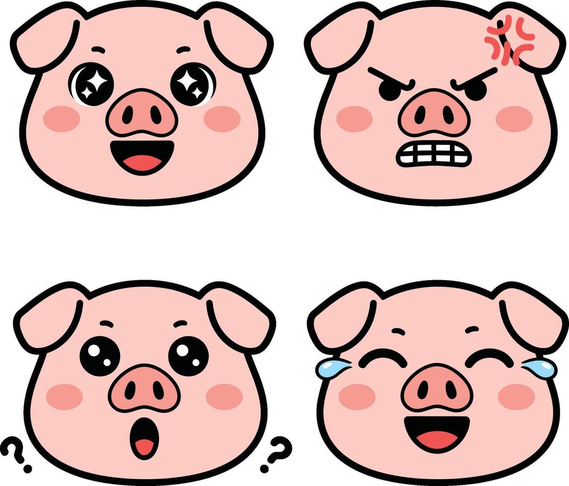 Four different pig faces with different expressions Pro Vector
