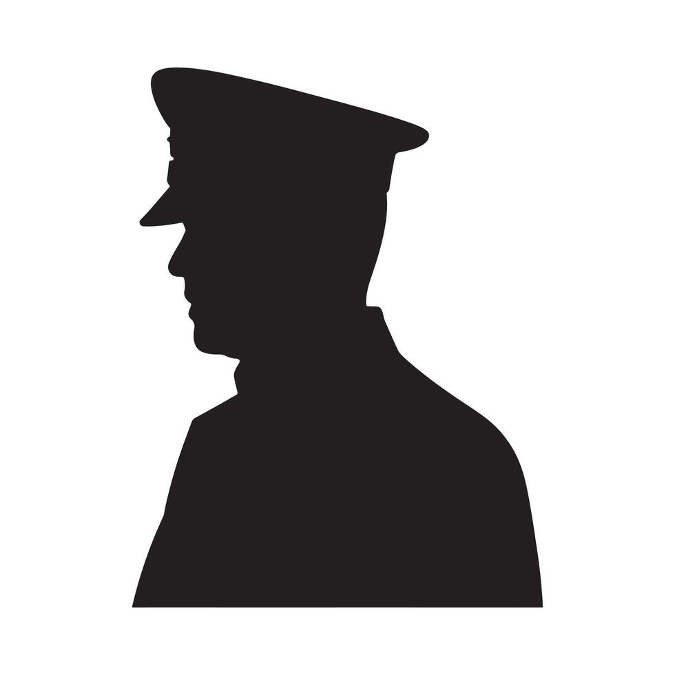 A stark silhouette of a man wearing a peaked cap and uniform vector