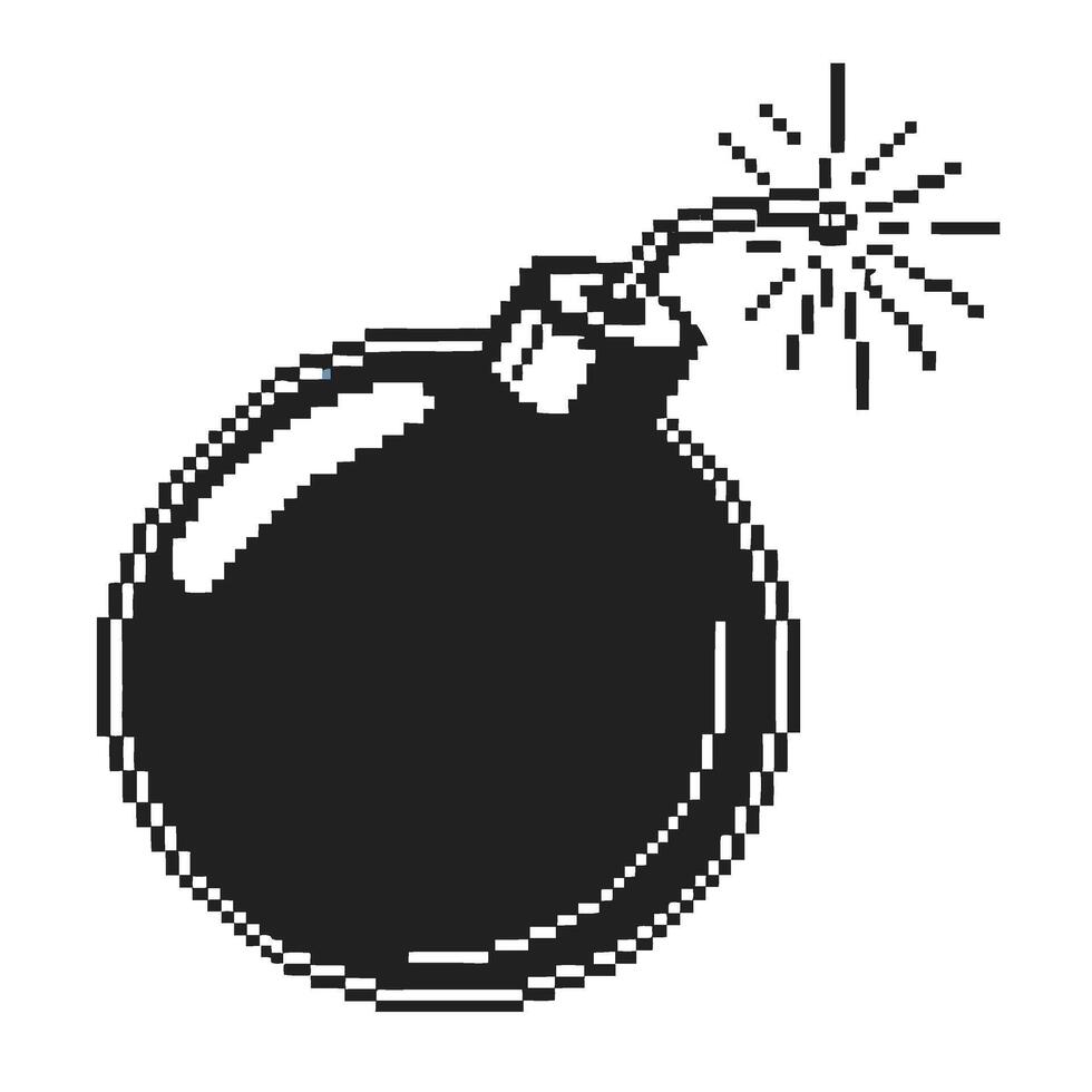 Pixel art bomb icon with burning fuse retro explosive symbol, simple black and white game design element on transparent background Pro Vector