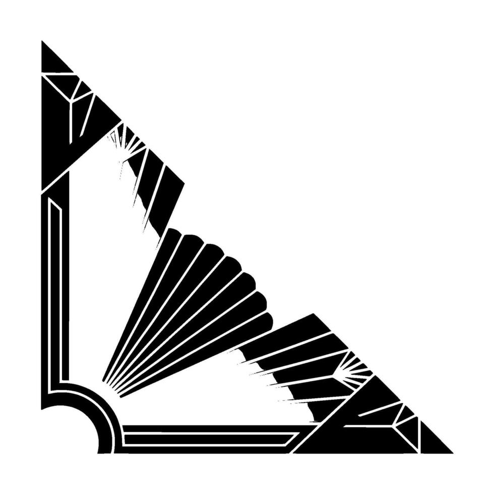 A stylized art deco corner embellishment featuring a radiating fan motif with sharp geometric lines and a to gradient Pro Vector