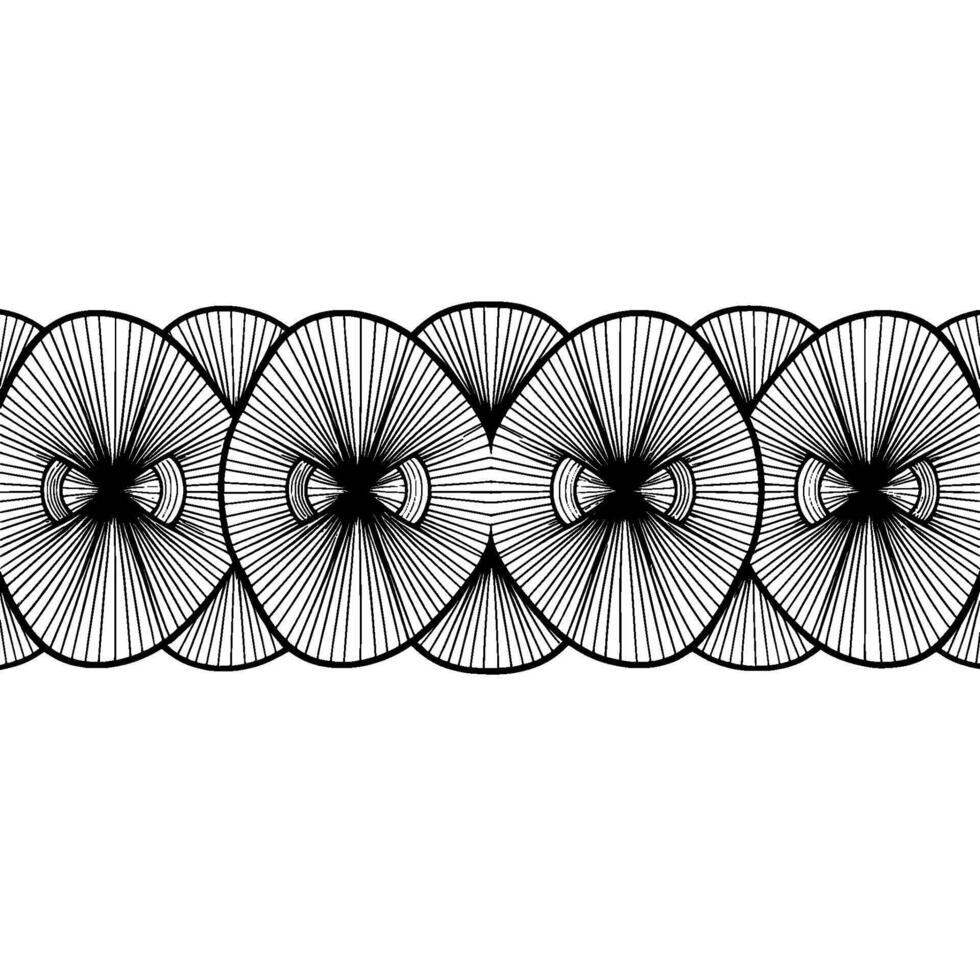 A seamless abstract geometric pattern featuring repeating stylized eye shapes with radial line detailing and a scalloped bottom edge Pro Vector