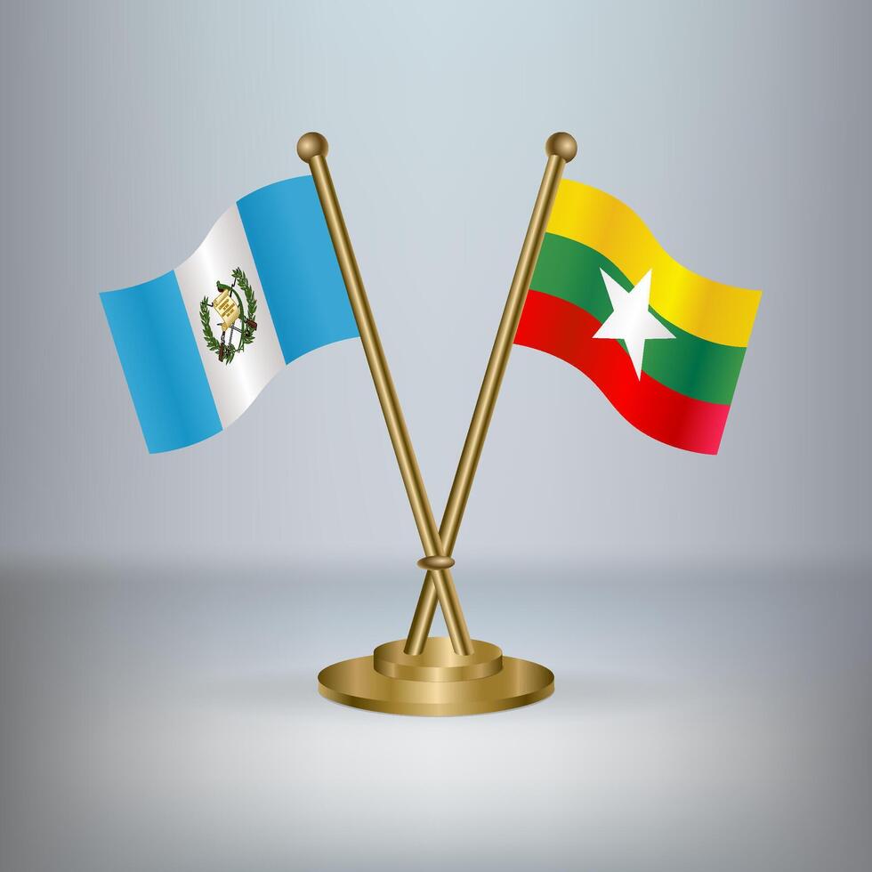 Guatemala and Myanmar table flag relation, with gradient background Pro Vector