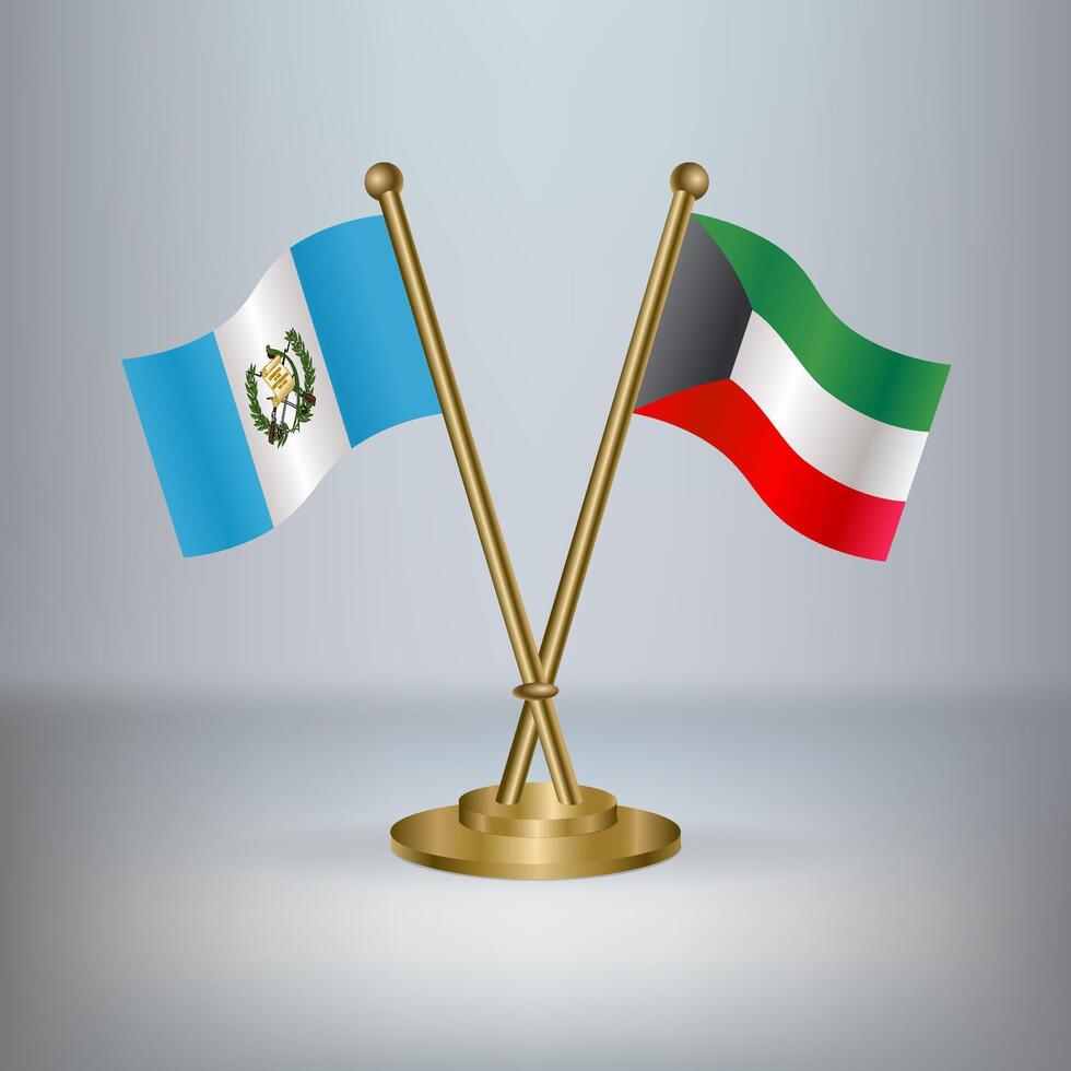 Guatemala and Kuwait table flag relation, with gradient background Pro Vector