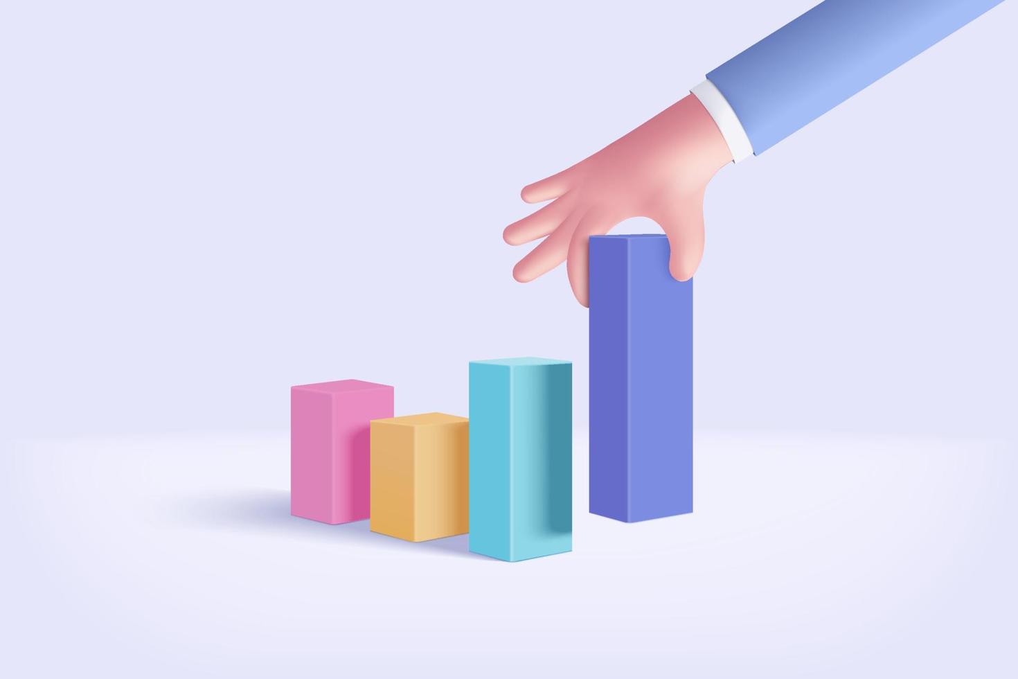 3d leadership for successful new idea. Excellent business graph on background. investment creative solution in hand holding graph concept. 3D vector finance render on white background Pro Vector
