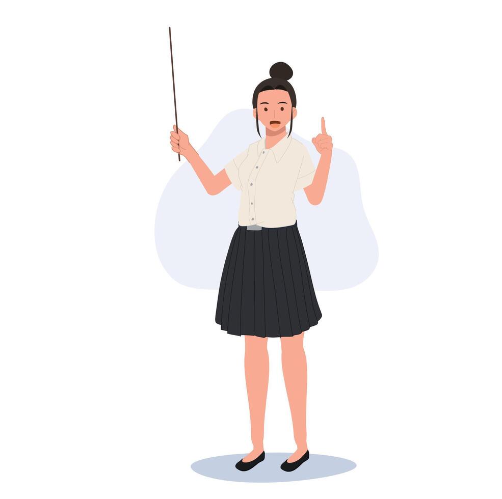 Thai University Student in Uniform Giving Lecture with Pointer. cartoon . Pro Vector