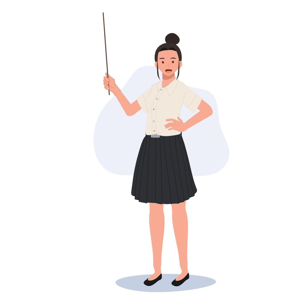 Thai University Student in Uniform Giving Lecture with Pointer. cartoon. Pro Vector