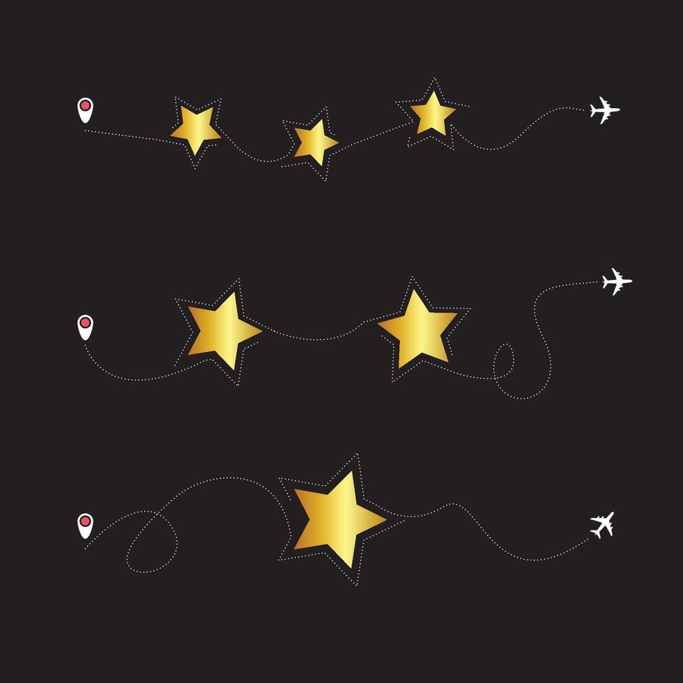 Set of Star airplane. Plane with dashed line in Star shape, travel star review and feedback from customer in simple linear style Pro Vector