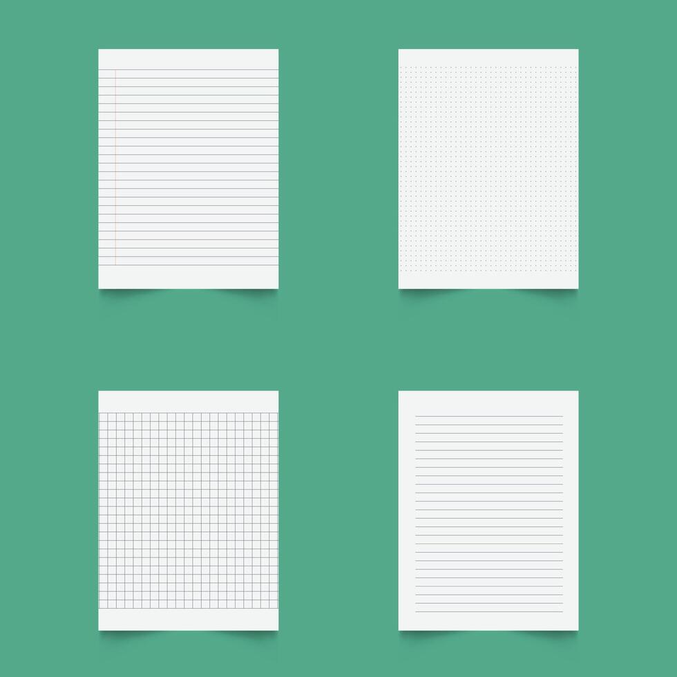 Set of blank sheets of lined, square grid and dotted paper in a5 format. Paper templates for notes, writing, sketching, and journaling. Ideal for school, office and work. Pro Vector