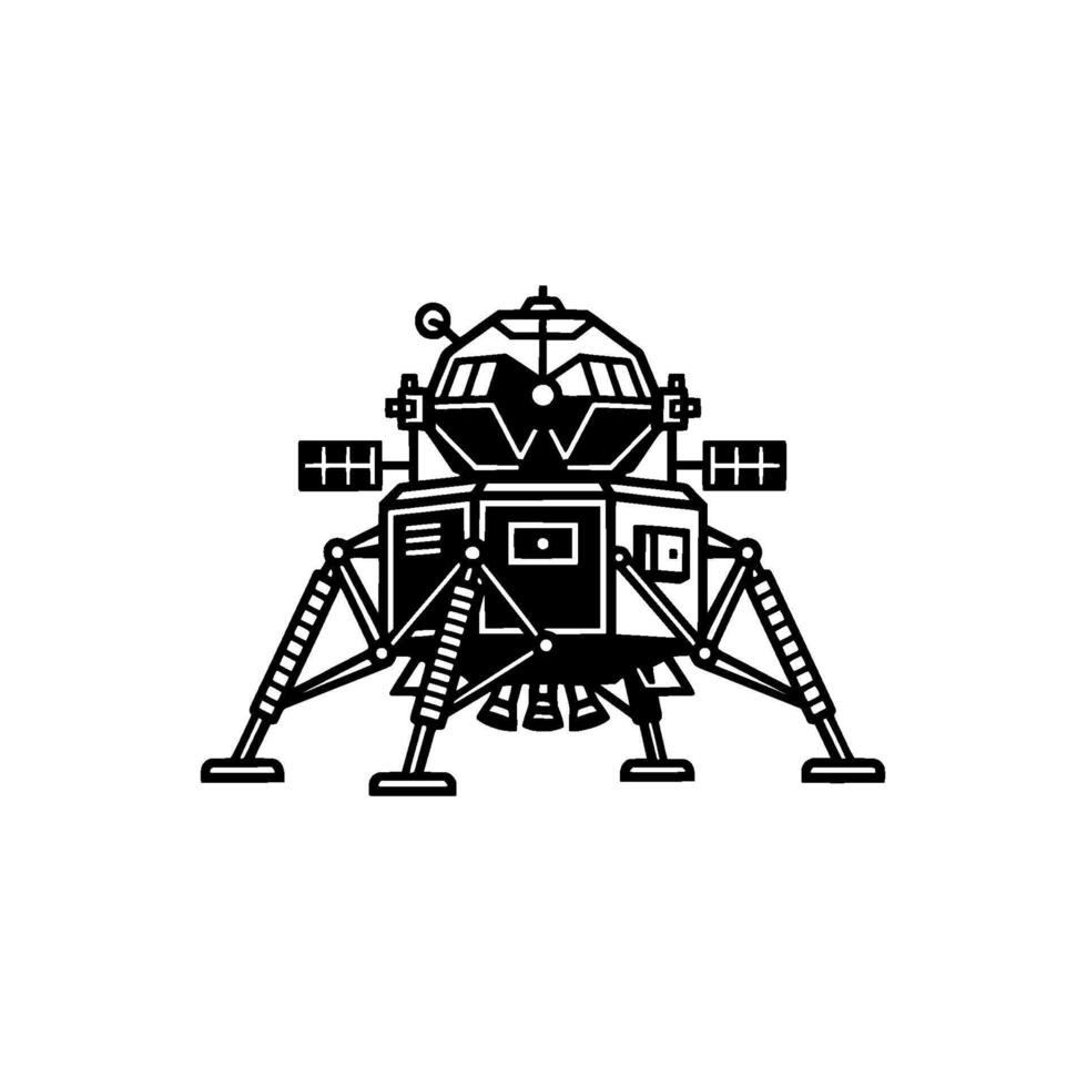 Lunar lander illustration showcasing a detailed spacecraft module with landing struts and a central command unit presented in a minimalist line art style for space exploration themes Pro Vector