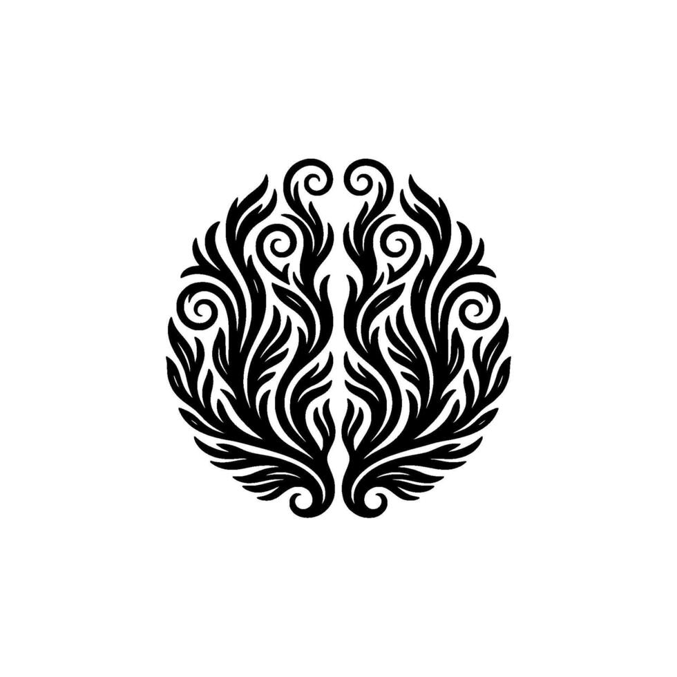 Intricate flame emblem depicting stylized phoenix wings within a circular ornamental exploring mythical creature symbolism and ancient lore Pro Vector