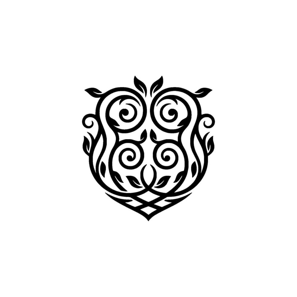 Intricate floral emblem depicting stylized leaves and swirling patterns within a circular ornamental shield representing sophisticated brand identity concepts Pro Vector