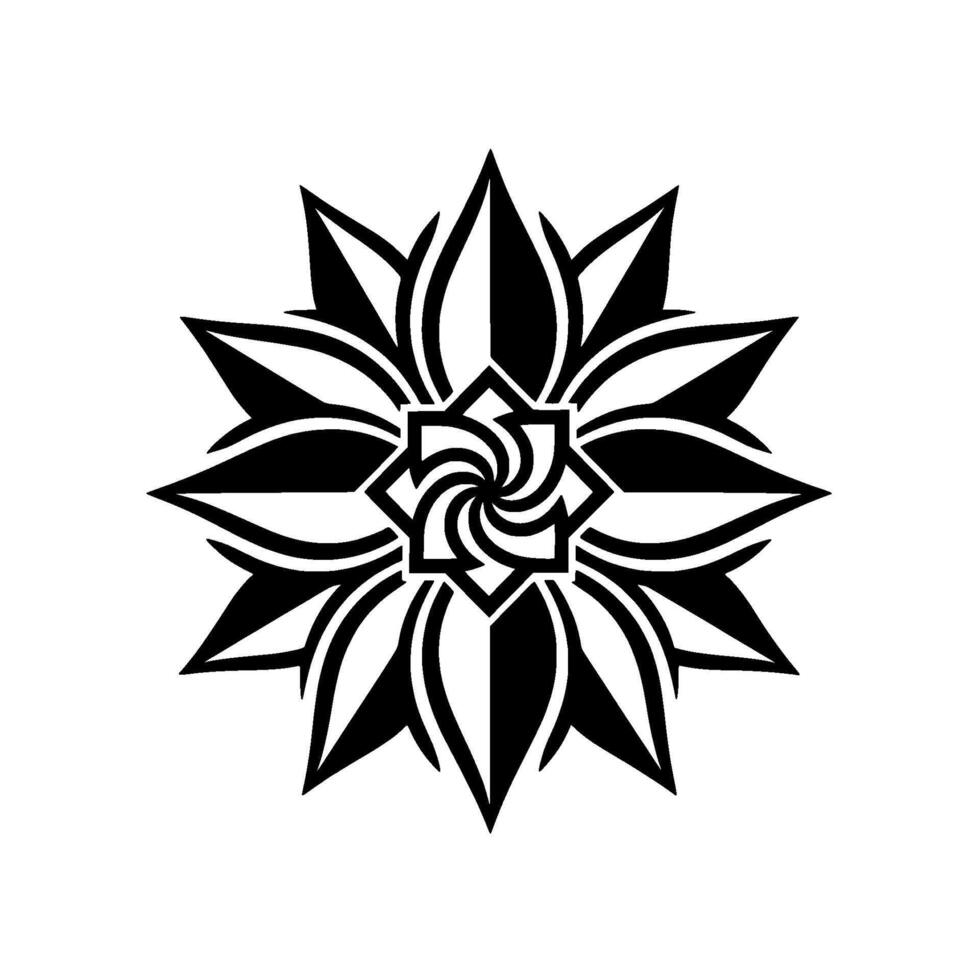 Intricate starburst emblem showcasing layered geometric petals and a central spiral motif representing advanced digital principles Pro Vector