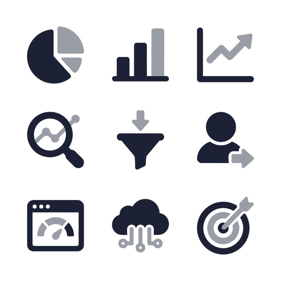 Modern Style Data Analytics and Business Intelligence Icons Set for Presentation Pro Vector