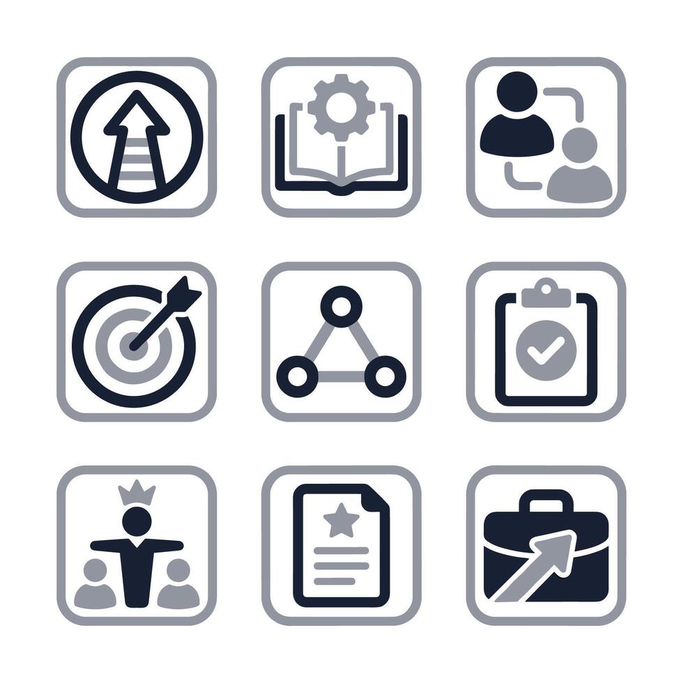 Minimalist Flat Design Business and Management Rounded Square Icon Set Pro Vector