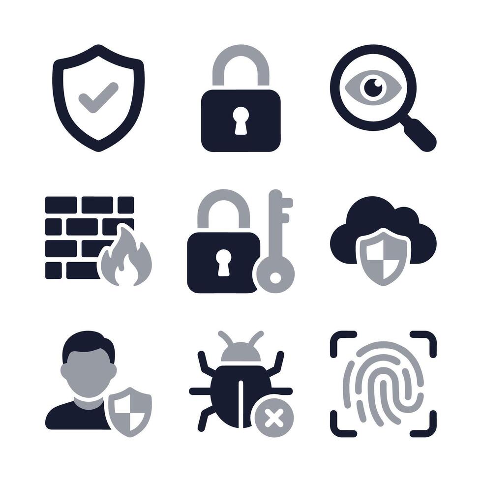 Minimalist Flat Design Security and Protection Icon Set for Web and App Pro Vector