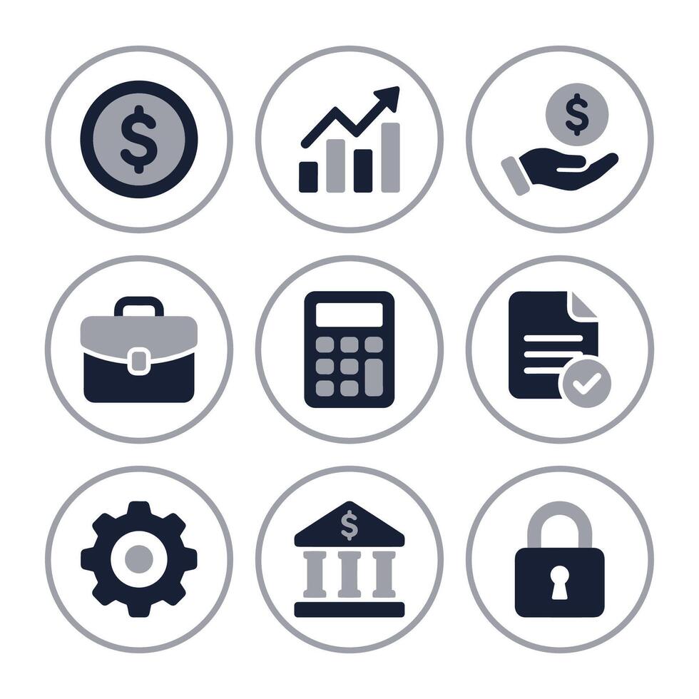 Modern Style Finance and Business Element Icon Set in Circular Shape Pro Vector