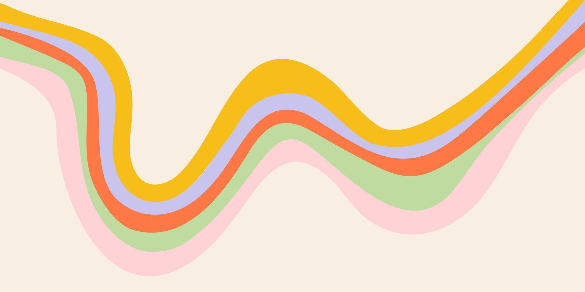 Stripe rainbow groovy abstract background with soft pastel curves Pro Vector