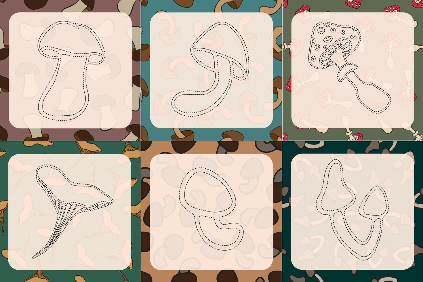 An exercise for developing writing skills. Task for preschoolers to trace mushrooms. Pro Vector