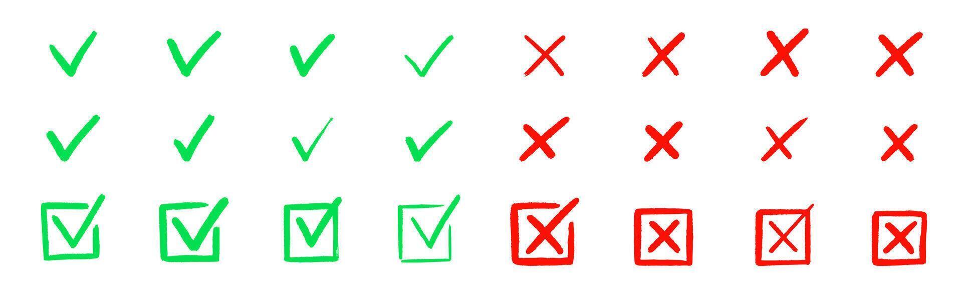 Check tick mark icons. Cross box x check mark checkbox v list draw hand drawn sketch doodle brush marker checklist symbol wrong right circle. Pro Vector
