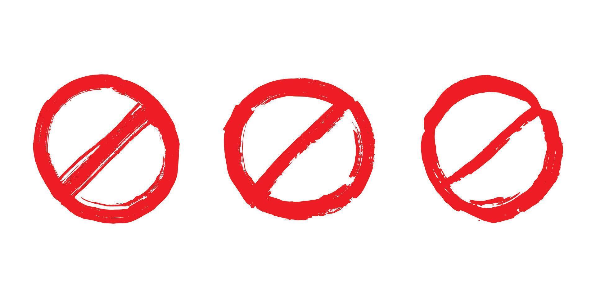 ban brush Set of hand drawn prohibition sign No entry symbol Red circle with cross line clipart in doodle style Ban Restriction Forbidden stop Single element for print, web, design Pro Vector