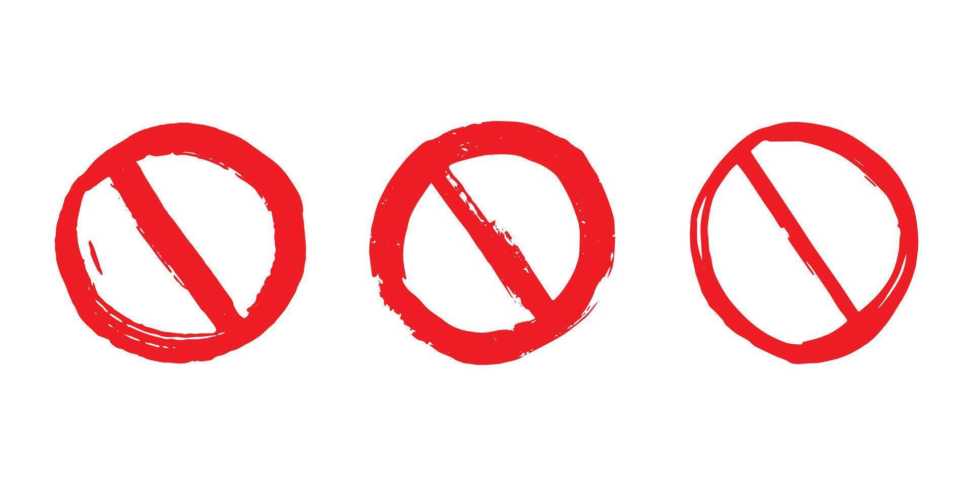 Set of hand drawn prohibition sign No entry symbol Red circle with cross line clipart in doodle style Ban Restriction Forbidden stop Single element for print, web, design ban ink Pro Vector