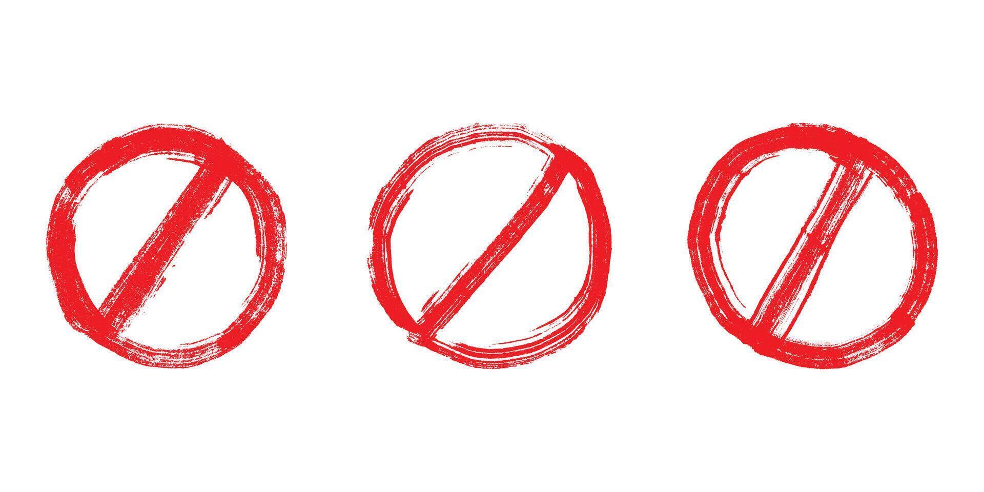 Set of hand drawn prohibition sign No entry symbol Red circle with cross line clipart in doodle style Ban Restriction Forbidden stop Single element for print, web, design ban circle Pro Vector