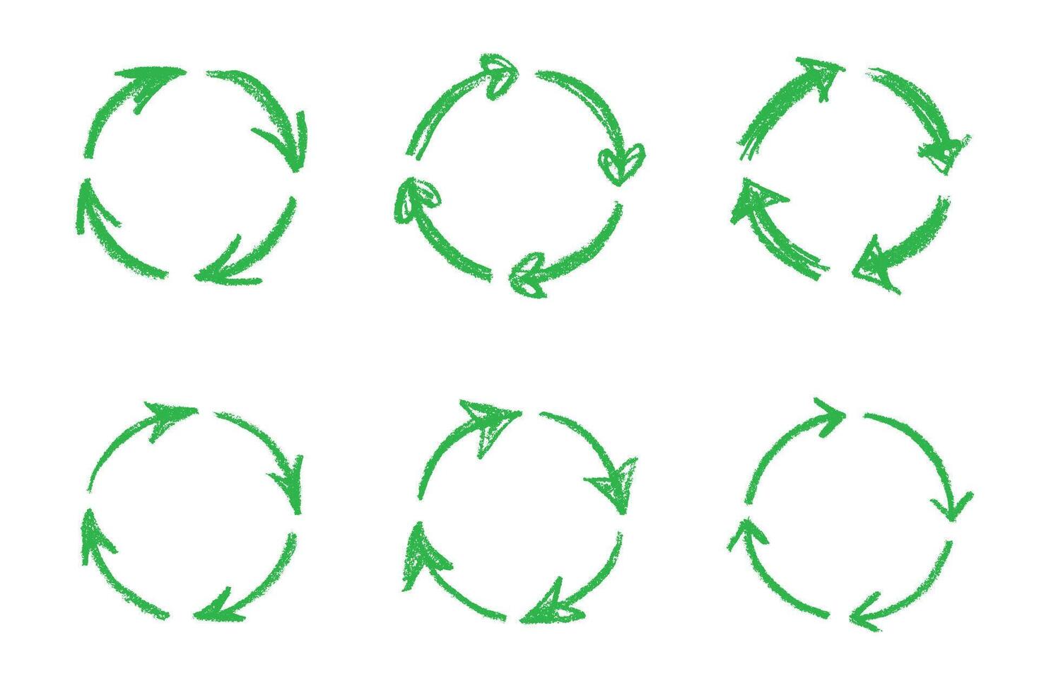 motion arrow pictogram Set of hand drawn recycle arrow icon Recycling resources symbol Reuse of materials, zero waste, green environment, saving the planet Pro Vector