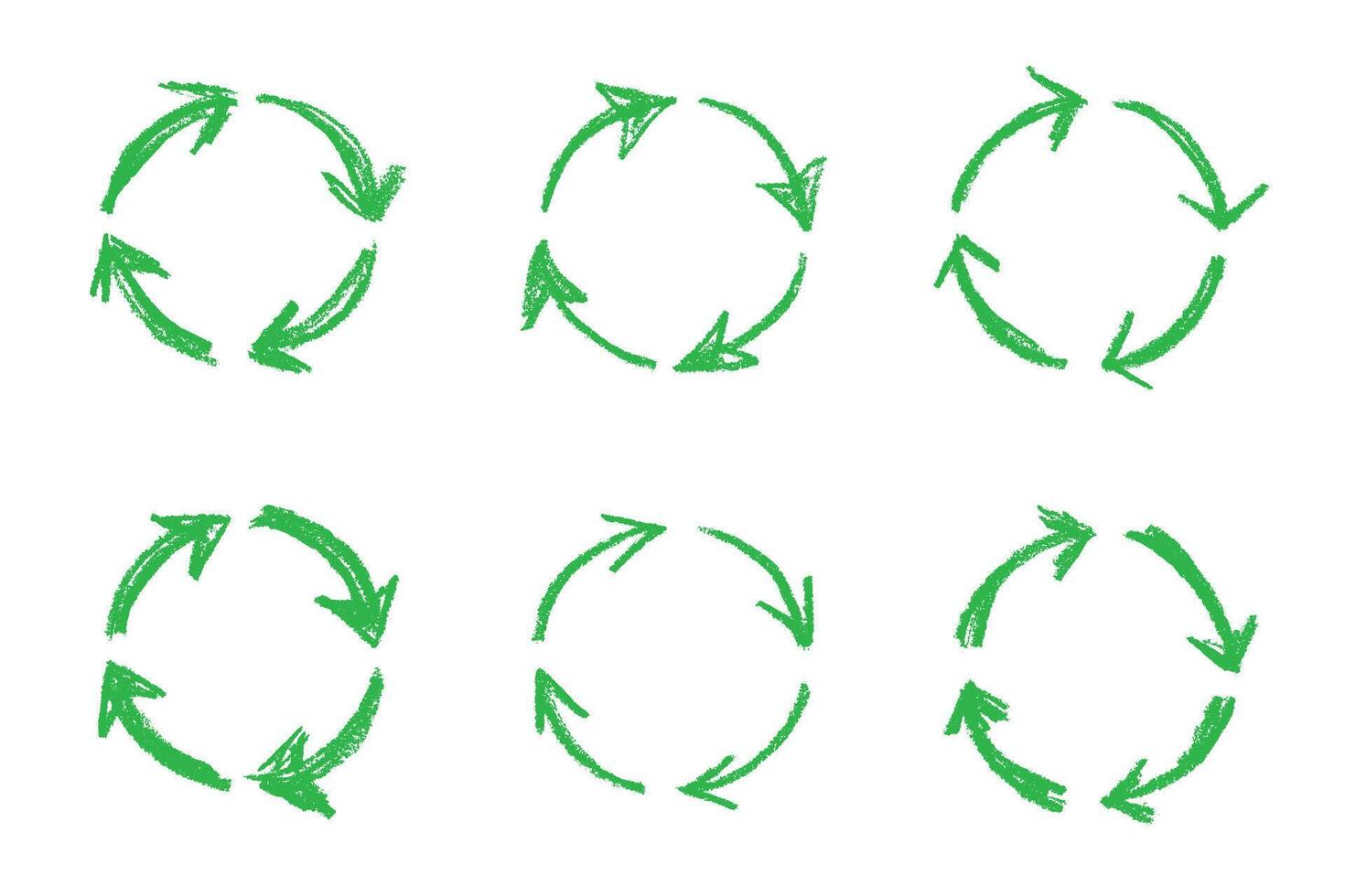 Set of hand drawn recycle arrow icon Recycling resources symbol Reuse of materials, zero waste, green environment, saving the planet motion arrow isolated Pro Vector