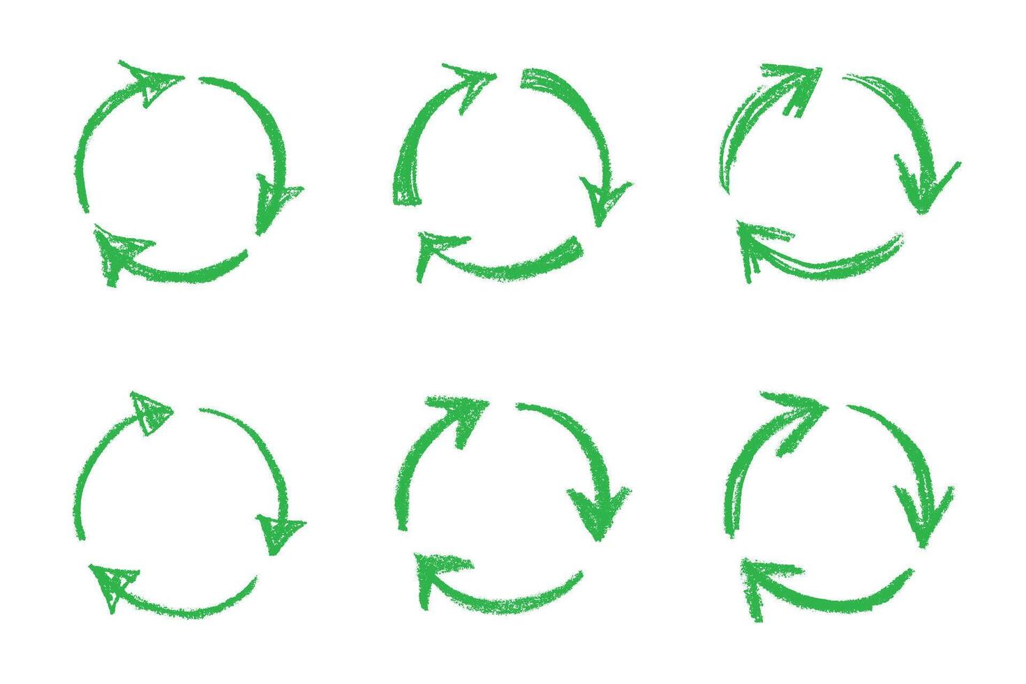 Set of hand drawn recycle arrow icon Recycling resources symbol Reuse of materials, zero waste, green environment, saving the planet motion arrow organic Pro Vector