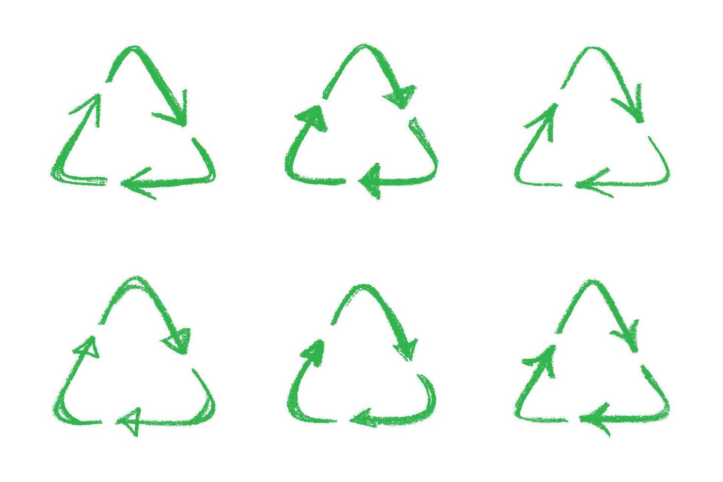 motion arrow concept Set of hand drawn recycle arrow icon Recycling resources symbol Reuse of materials, zero waste, green environment, saving the planet Pro Vector
