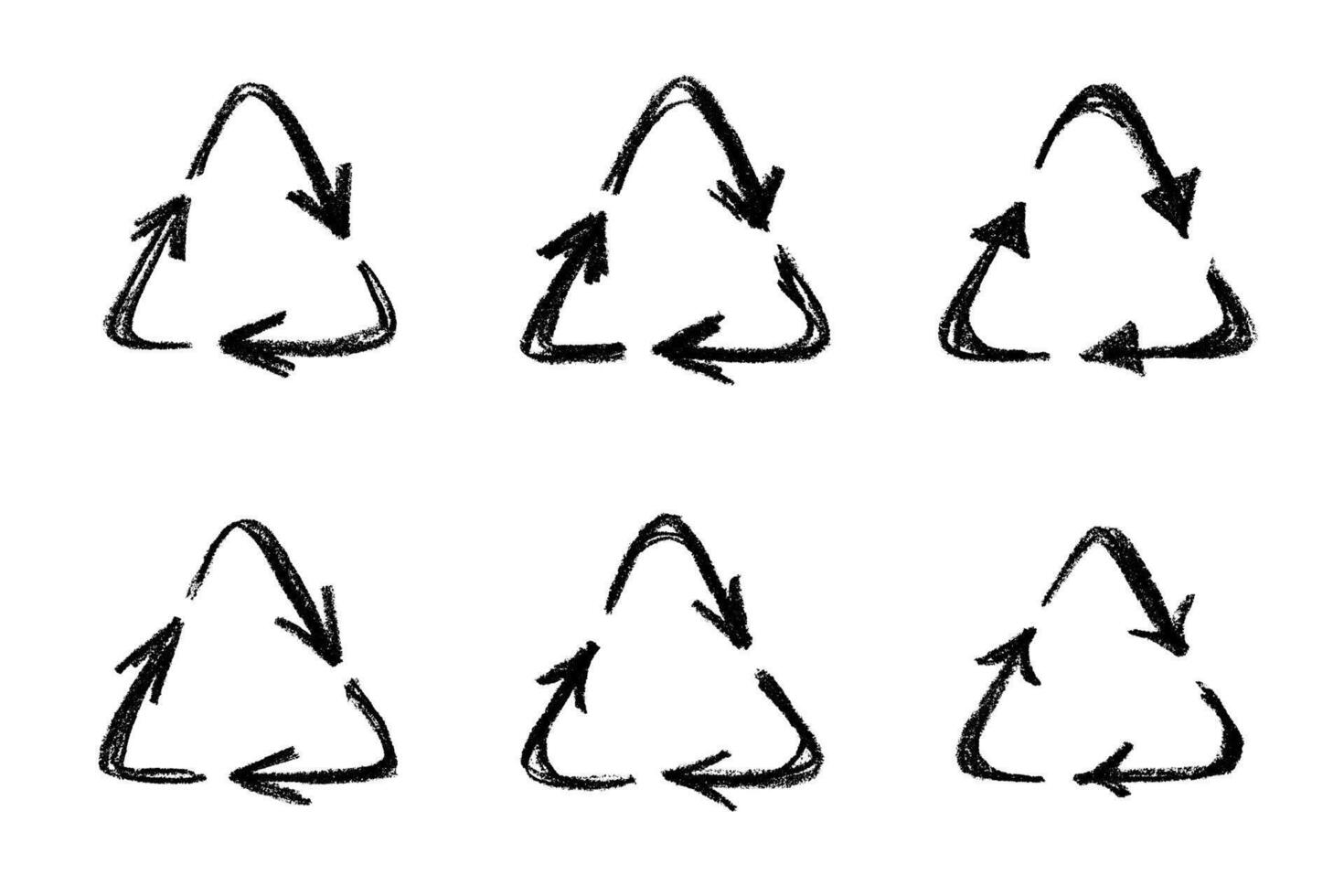 Set of hand drawn recycle arrow icon Recycling resources symbol Reuse of materials, zero waste, green environment, saving the planet motion arrow rotation Pro Vector