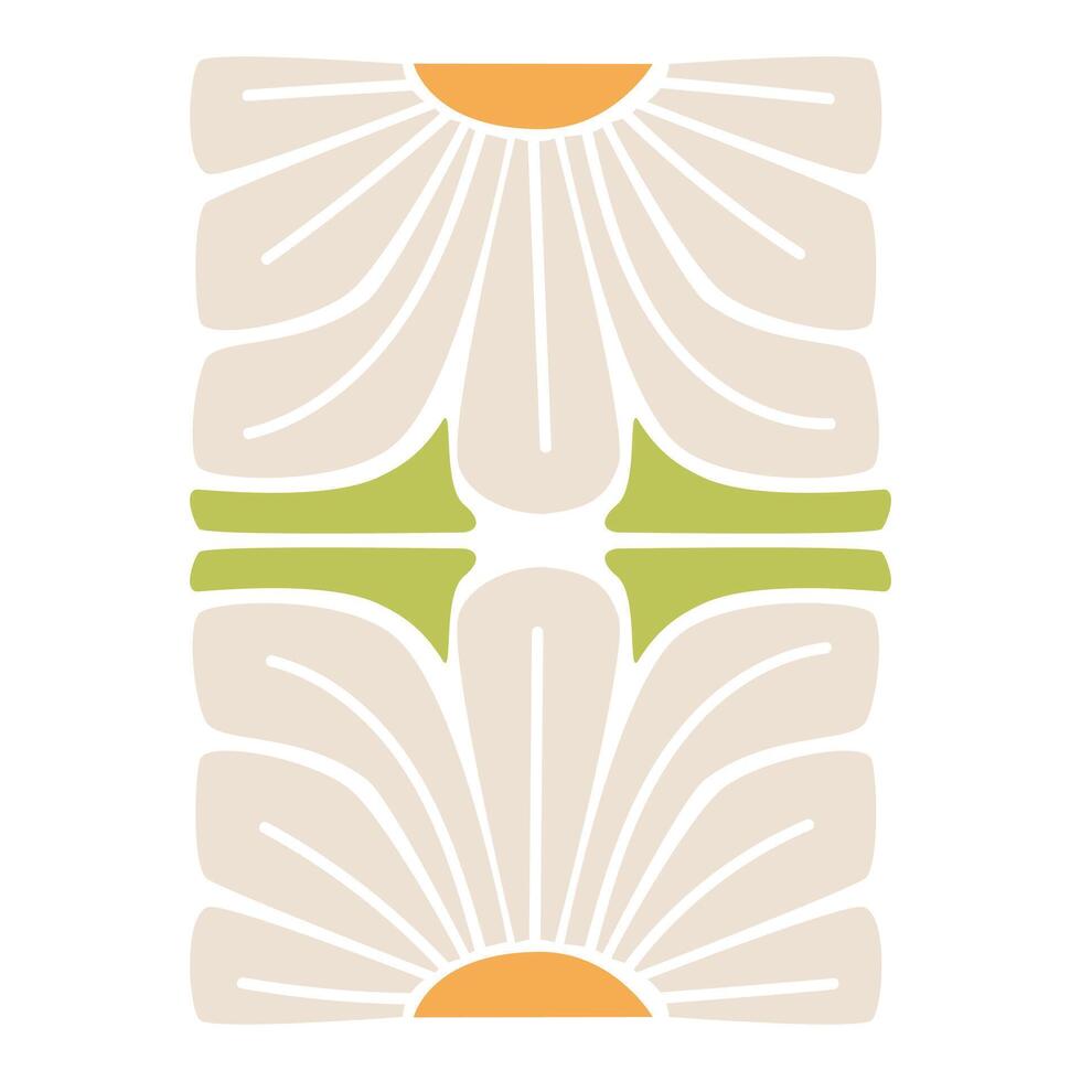 flat illustration of symmetrical daisy flower with leaves inscribed in rectangle. modern abstract geometric element. An ideal single design element for posters, home decor prints, textiles, and modern Pro Vector