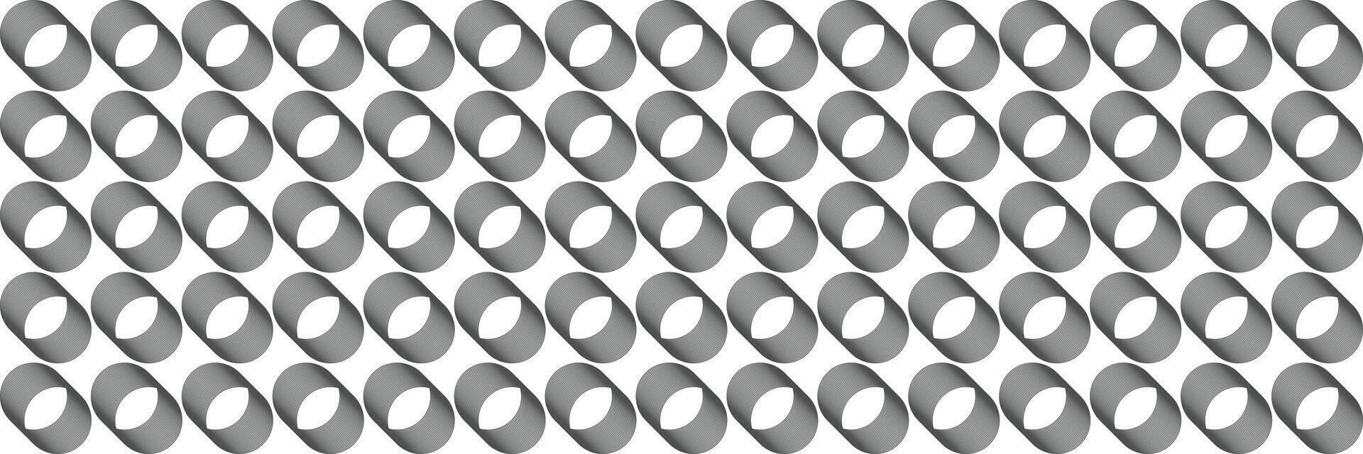 Seamless abstract cylinder pattern wallpapers. Geometric loop shapes, modern monochrome background, repetitive optical illusion design. Pro Vector