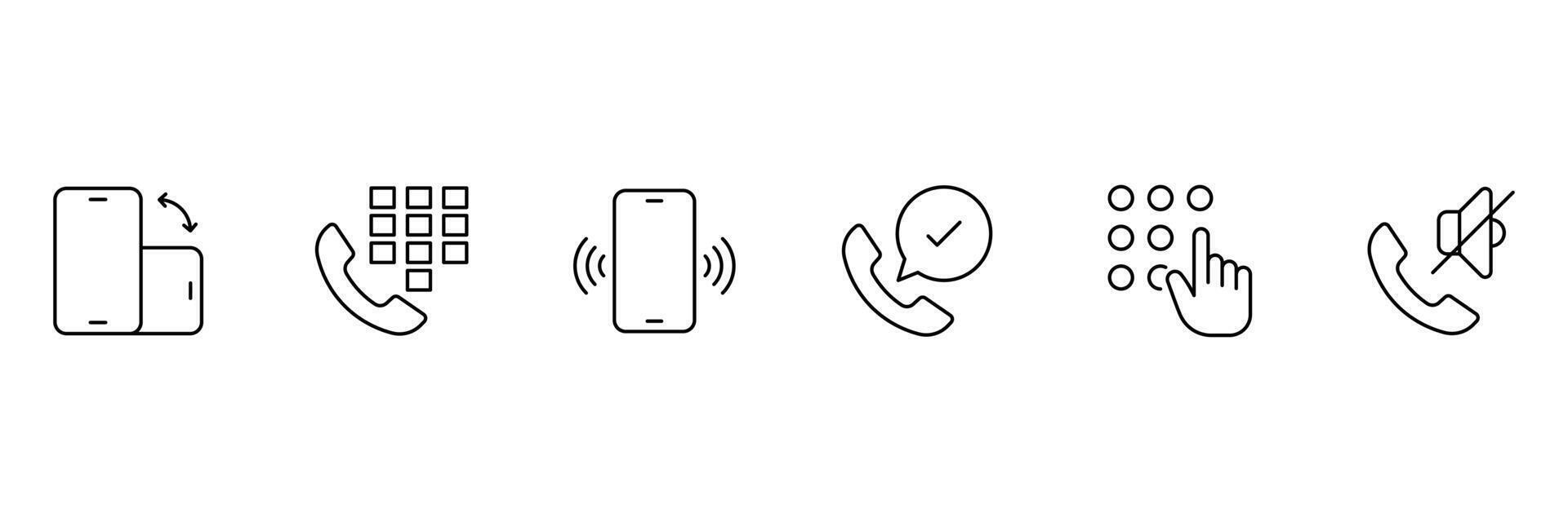 Phone outline icon set. Contact icons set. Tele communication or communication symbol. Containing contact, calling, communication, call, message, smartphone, and more. Pro Vector
