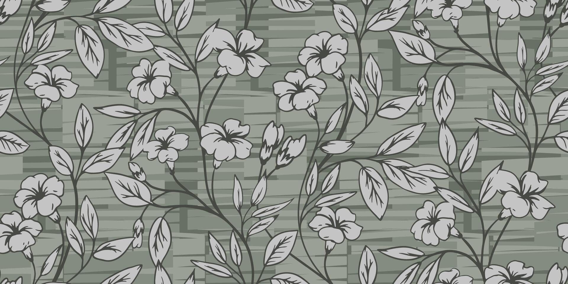 Elegant botanical pattern with hand drawn flowers and slender leaves on a textured geometric background. Soft outlines create a delicate seamless design for fabric and decor Pro Vector