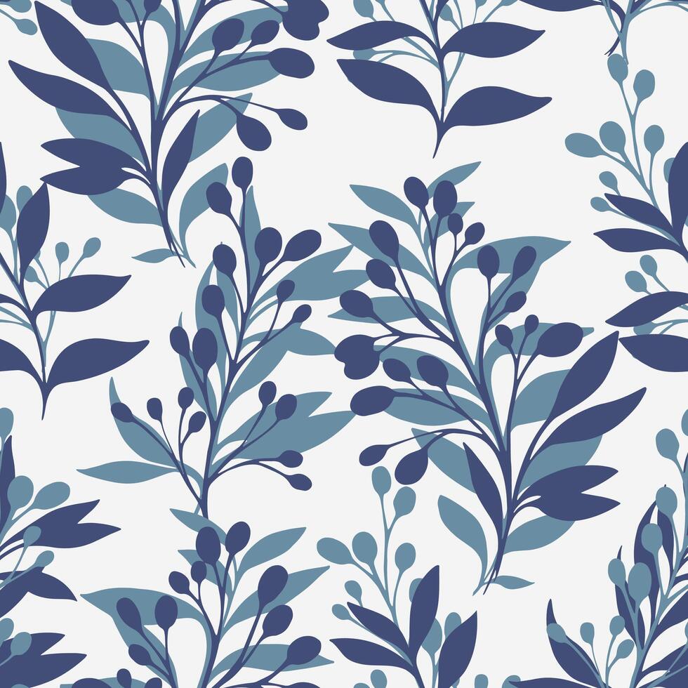Seamless pattern featuring layered leafy branches in rich navy and soft blue tones on a light background, creating an elegant botanical design perfect for textiles, decor, and packaging Pro Vector