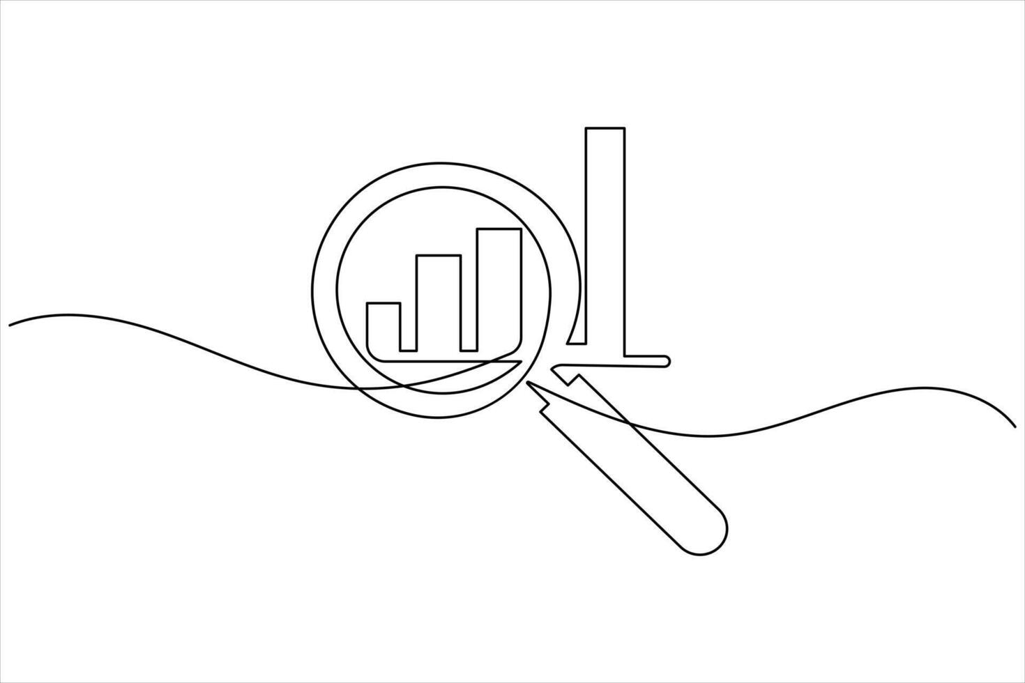 Magnifying glass over graph bars, continuous line drawing, concept for growth analysis Pro Vector