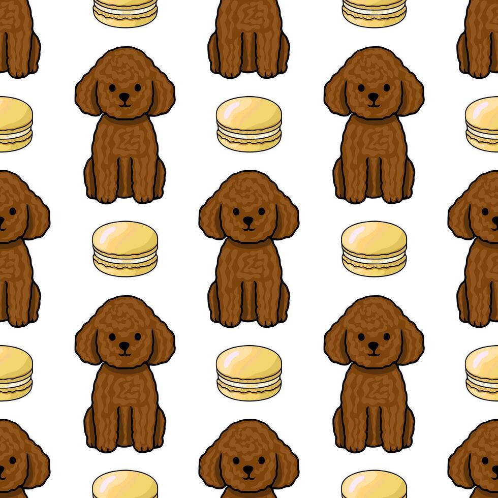 A charming pattern featuring adorable brown toy poodles and yellow macarons, creating a sweet and playful repeating motif. Pro Vector