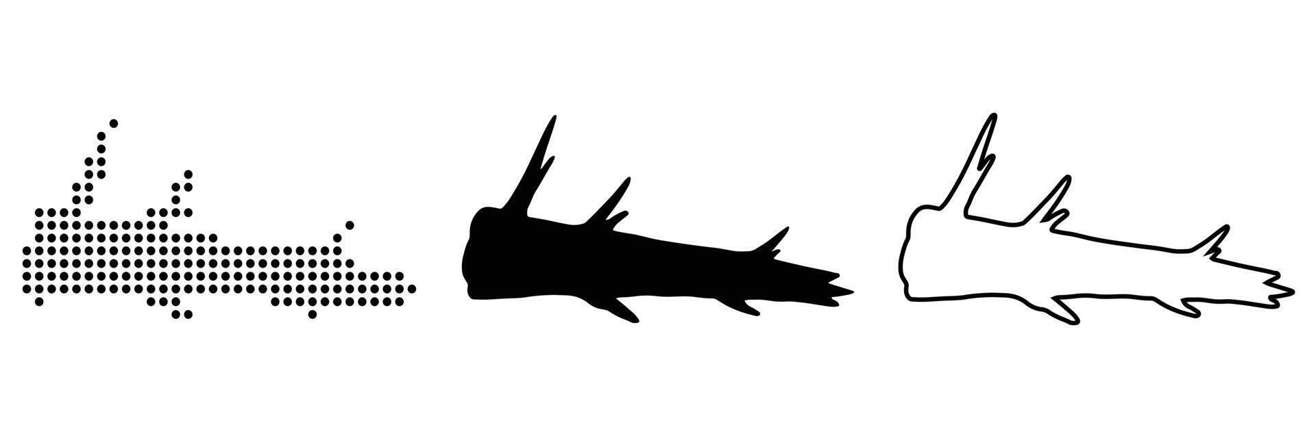 Tree in Three Artistic Styles Solid Silhouette, Halftone Dot Matrix, and Outline Drawing with Rounded Canopy Pro Vector