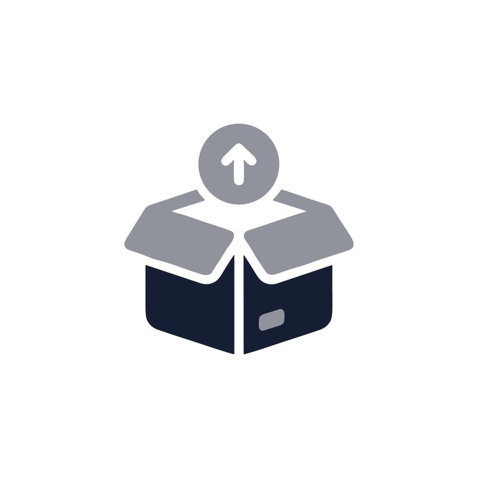 Flat Design Up Arrow into the Open Box Package Icon Element Pro Vector