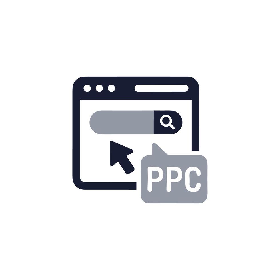 Flat Website PPC Concept with Search Bar and Cursor Arrow Icon Pro Vector