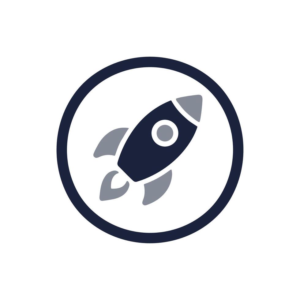 Simple Flat Design Rocket Launch Inside Circle Frame Space Exploration Icon Pro Vector