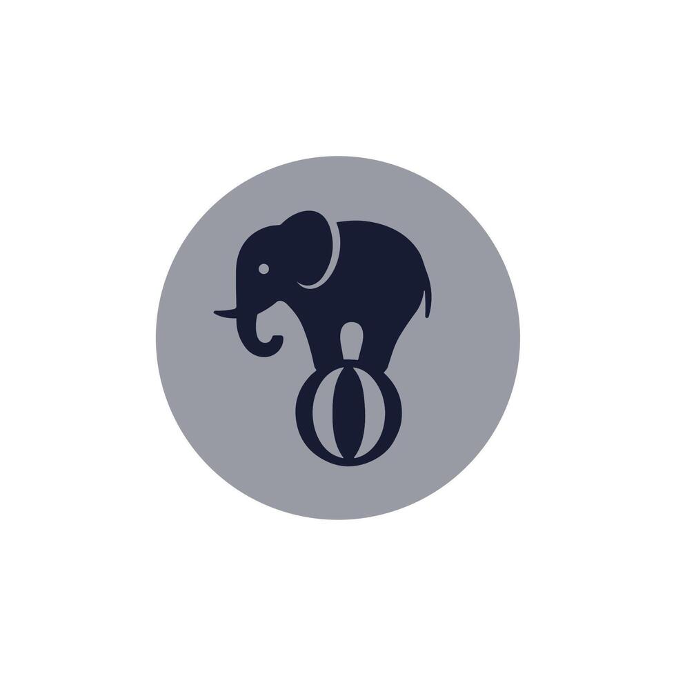 Minimalist Silhouette Elephant Balancing on Ball Inside Circle Illustration Pro Vector
