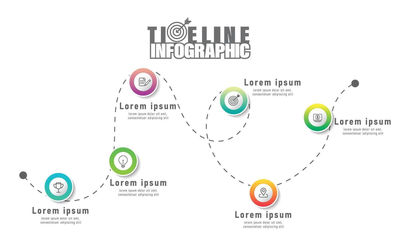 Timeline infographic template with six steps and icons for project management and business presentation Pro Vector